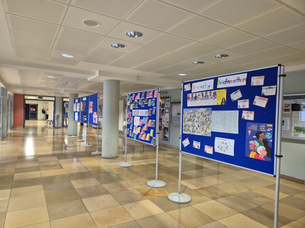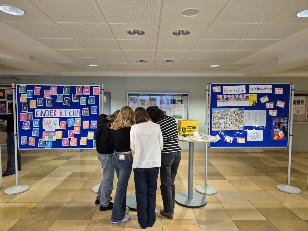 Für zusätzliche Beteiligung sorgten Mitmachtaktionen, die zum Austausch und Nachdenken anregten. Außerdem nahmen viele Lernende am Amnesty International Briefmarathon teil und setzten damit ein aktives Zeichen für Menschenrechte weltweit. Auch die Gruppe „Bunte Mittagspause“, die zu einem gerechten und respektvollem Umgang mit allen Geschlechtern sowie zur Akzeptanz queerer Identitäten aufrief, beteiligte sich wieder an der Ausstellung.